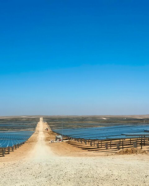 Baynouna Solar Park near Amman, Jordan, is a beacon of advanced solar technology. Completed efficiently and on time in 2018, this monumental project boasts a capacity of 248 MW, all harnessed using IDEEMATEC’s innovative Horizon SafeTrack solar trackers.