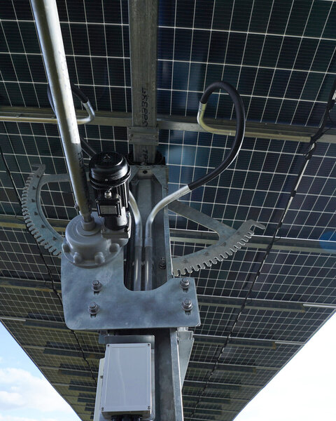 Since the main carrier and solar panels are decoupled by the drive transmission, and we control multiple tables with the same motor, our modular design allows us to drive more trackers.